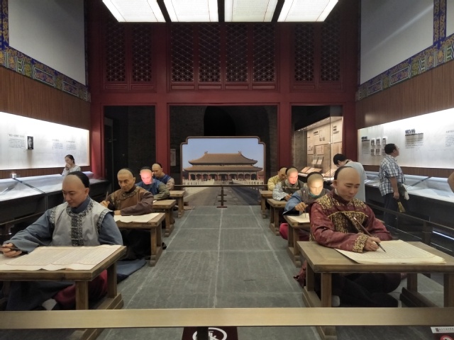 下午2点,小队成员又来到了江南贡院,对贡院的南馆和北馆分别进行参观。在南馆,小队成员了解到科举考试制度的发展、改革与废除,认识到古代科举考试的艰辛与痛苦,同时也感受到了科举考试的严谨与榜上有名后的无上荣耀。在北馆,有众多实际体验的场景,小队成员们跃跃欲试,纷纷体验了一下科举之路,感受了古代科举考试时的艰辛条件与一步青云后的欣喜。参观完后,小队成员进行合照,并进行问卷调查。