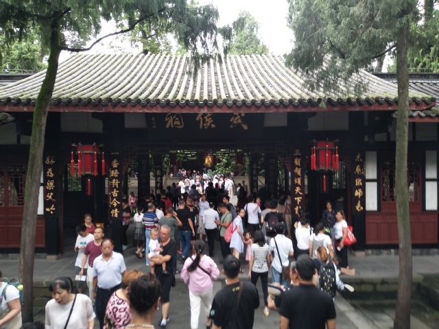 成都武侯祠是中国影响最大的三国遗迹博物馆,整个武侯祠坐北朝南,主体建筑为大门,二门,汉昭烈庙,过厅,以刘备殿最高,建筑最为雄伟壮丽。武侯祠中有着许多三国著名人物的雕像,更有许多珍贵的人物对联、字画,为我们了解历史提供了珍贵的资料。杜甫草堂则是唐代著名诗人杜甫流寓成都时的故居,大廨、诗史堂、工部祠3座主要纪念性建筑物坐落于幽静的园林之中,给人视觉上享受的同时也给人精神的启迪。实践过程中,实践团成员不仅了解了历史人物,也感受到了巴蜀文化的魅力。实践期间,实践团成员采访了几位前来参观的少年儿童,他们明确表示了对传统文化的热爱,但也承认自己对这样的文化缺乏了解,希望未来能有更多的机会了解接触这一切。