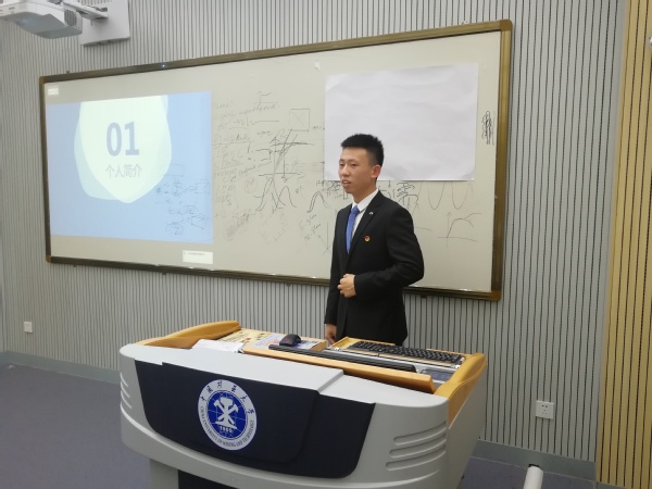 团委书记游洋和学生组织指导老师李亮、曹鹏以及兼职辅导员腾毅、王浩担任评委,13位学生会主席团候选人参加了本次答辩会。