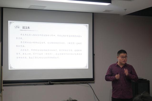 马骏同学脱颖而出,成功晋级总决赛。在决赛的说课环节,马骏同学凭借对李清照《醉花阴》的精彩讲解,取得了第一名的成绩。即兴演讲环节,马骏同学通过对徐霞客、李时珍等历史名人旅行事迹的讲述,结合现代大众对旅行的认识与思考做出了精彩的论述,赢得了评委老师们的一致认可。本次决赛持续三个半小时,经过激烈的角逐,最终马骏同学以总分第二名的优异成绩,获得了本次大赛的二等奖。