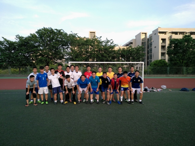 的几名教职工参赛,组成教师代表队和学生代表队在足球场上一同竞技。