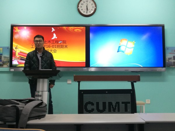 工程力学16-01班于1月15日在博五A201举办“期末总结”主题班会。本次班会由班长牟恭雨同学主持,班主任李明老师出席了此次班会,工程力学16-01班全体同学积极参加。