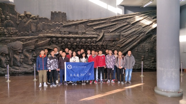 17-07班全体同学在班级统一组织下乘车到徐州抗日战争纪念馆进行参观。