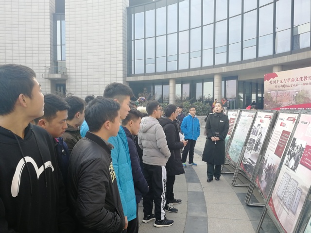 团委书记倪涛涛老师发表了讲话,说明了此次活动的相关事宜。之后,由倪涛涛老师带队,在相关工作人员的带领下,同学们参观了那些展板,仔细地阅读了展板上关于战争的文字与图片。在淮海战役烈士纪念馆的工作人员的生动的讲解下,同学们更深刻地了解到了人民军队的艰辛与他们的毅力,也深深地被他们的革命精神所感动。看完这些展板,听完了工作人员的介绍之后,同学们怀着对先烈们崇敬的心情结束了本次活动。
