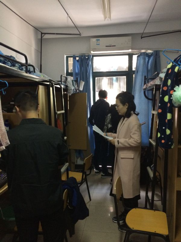 在检查过程中,检查组重点就宿舍房间卫生、安全等诸多方面进行了检查。针对宿舍安全问题,检查组主要就宿舍内是否有使用大功率加热电器、电磁炉、电饭锅;是否有私拉电线行为;是否存在学生在宿舍内吸烟,存放易燃易爆等危险物品等现象进行逐一排查。检查过程中发现各宿舍卫生状况普遍较好,基本做到了勤开窗通风,地面、桌面干净整洁,用电合理。但与此同时,仍发现有个别宿舍存在空气质量较差,违规使用过大功率电器等安全隐患问题,检查组及时指正并督促其改正问题,改善宿舍卫生生活环境,并完成了复查工作。