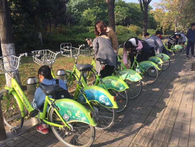上午8点,志愿者们准时集合,在尚恩服务队负责人王菘美的带领下前往目的地。到达第一个公共自行车站时,负责人给每个志愿者们都分发了抹布,志愿者们很快就进入到工作当中。他们先清洗抹布,用抹布打扫着公共自行车的车身。在清洁的同时,还调整了自行车坐垫、打扫了公共自行车站周边的环境、清理了锁柱。志愿者们打扫好一个站点后,再赶往下一个站点。最后沿着珠山东路来到云龙湖景区站点。整个过程中,志愿者们都干劲十足,认真负责地完成了工作。