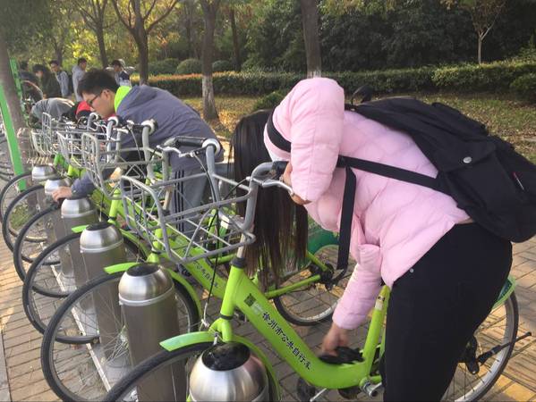 南湖校区北门开展自行车清洁志愿活动。