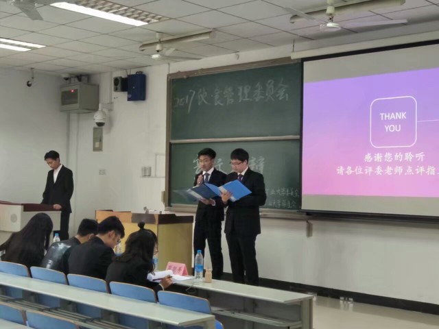 的强处,做到了扬长避短。之后,两位部长又阐述了今后工作的计划和可能会遇到的实际问题以及解决方案,这个计划包括以后实行工作的各个时期的宣传,(日常)工作流程,考核制度以及日常值班的工作内容等。此后,两位部长又对以后举办的活动进行介绍,如“矿大人的美食图集”、“后勤面对面”等活动。最后,当然就是紧张又刺激的问答环节了,虽然评委总是百般刁难的,但作为矿大人,土木人,土木生活部的部长当然也是从容不迫、对答如流,赢得现场阵阵掌声。