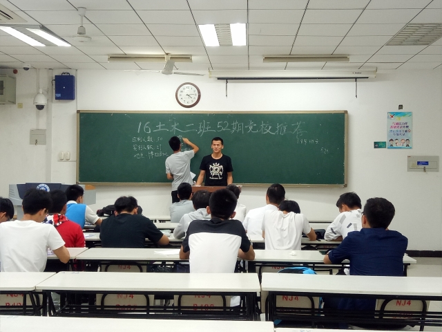 土木工程2016-02班全体成员在博学四号楼B402举行第52期党校推荐会议。