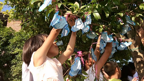 为了确保活动的顺利开展,“筑梦”公益支教团三分队队员召开了活动准备大会。“小小梦想屋”活动虽然是下午三点三刻开始,但是分队成员一点钟就开始准备,布置场地,准备材料,团队成员各司其职,不敢有丝毫的倦怠。活动开始前,成员准备好梦想卡片和有关于“小小梦想屋”的介绍词,并召开班主任会议,介绍活动流程。活动开始时,班主任给学生们介绍了梦想的定义之后,提出“长大以后想成为什么样的人?”、“现在最想得到的礼物是什么?”等问题,并随机抽点学生听听他们对自己梦想的理解。随后,各班班主任将徐州慈善总会捐赠的爱心物资分发给每个同学。紧接着,全体学生操场集合,出发前往龙盘村广场参加“系梦想、树理想”仪式,在此过程中,安全维护人员和医疗小组全程陪护,从而预防发生危险以及高温天气引发的中暑等问题。在黄色直播校长和曹鹏老师代表发言后,学生们集体将梦想卡片系在心愿树上,并合影留念。活动结束后,班主任将孩子们梦想卡片的回收,并整理孩子们的梦想,通过后期与筑梦内部人员交涉以“梦壁回音”的一对一活动来实现孩子们的梦想,然后由下一年支教团成员带回。