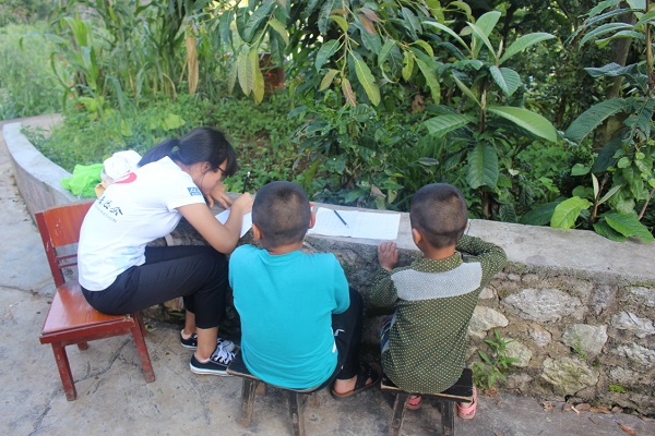 7月18日下午下课后,四分队4位支教队员带着受访孩子一起回家,贵州秀丽古朴、风景如画,支教队员踏上弯弯曲曲的山路,走过6座大山,等待支教队员的是位和蔼的老奶奶和她6岁的孙子。两位孙子很快打开作业写了起来,老爷爷去附近打工了,孩子爸爸在市里十多天才能回来一次,五十多岁的老奶奶一直笑着,眼里含着泪水向支教队员们讲着过去:父母离异、孩子2年没听过妈妈的声音、自己去过最远的地方就是距离50公里的兴义市、孩子很爱学习,每天都会看着他们写字……家访共持续了2个多小时。在家访过程中,支教队员对学生的家庭状况、成长环境、在家表现、学习习惯和生活习惯等游乐一定的了解,还和家长在交通、消防、用电、饮食卫生、家庭生活、户外活动等安全常识教育和心理健康教育上进行了沟通,增强了支教团“了解学生、教育学生、尊重学生、关爱学生”的责任感和使命感。
