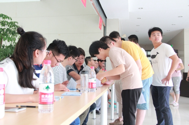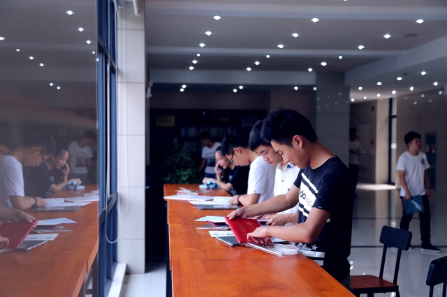 楼二楼大厅进行了联合办公,为2017届毕业生办理离校相关手续。