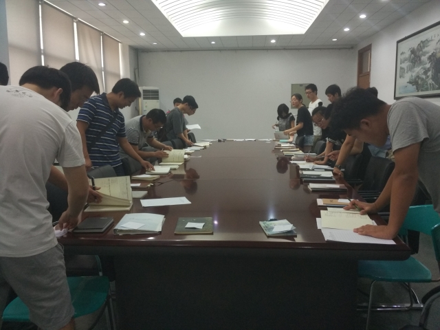 上午十点,评选活动正式开始。首先,由2016级辅导员曹鹏老师向各位评委详细介绍评分标准和细则。据悉,本次活动共有37位同学参赛,评委们依据书面整洁度、内容准确度、逻辑条理性、形式创新度四个方面进行评分,并根据笔记的具体情况酌情加分。在评选过程中,各评委仔细察看参赛选手的笔记,不时因同学们的认真态度和秀美字迹发出感慨,其客观、公正的态度保证了评分的合理性。评分工作结束后,进入到最终的统分阶段。本次活动共设特等奖1人,一等奖2人,二等奖5人,三等奖和优秀奖若干,评选结果将在审核后公示。