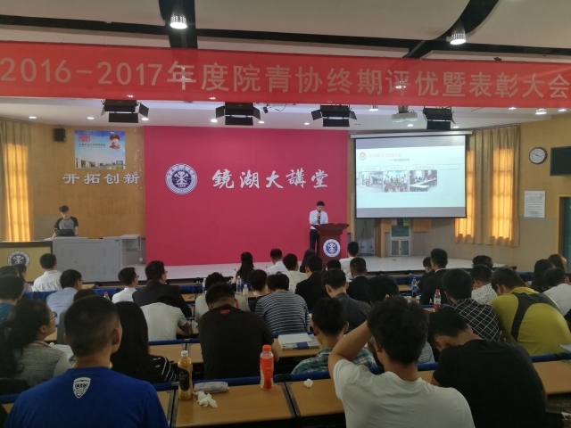 5月21日,2016-2017年度院青协终期评优暨表彰大会于镜湖大讲堂如期举行。校青协主席孙圣智、校青协副主席王硕、万紫红等担任本次评优大会的评委,20个院青协参与本次大会。