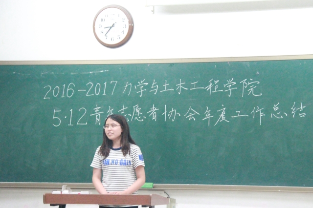 5·12青年志愿者协会在博学楼五号楼B201举行年度工作总结会。此次会议在团委老师倪涛涛老师和骆奕老师的组织指导下开展,由青协主席袁宇主持,各部部长以及干事参加本次会议。