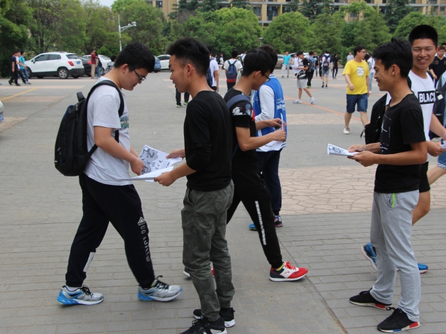于一食堂广场进行了“书写矿大”宣传活动,对来往的学生进行活动宣传。
