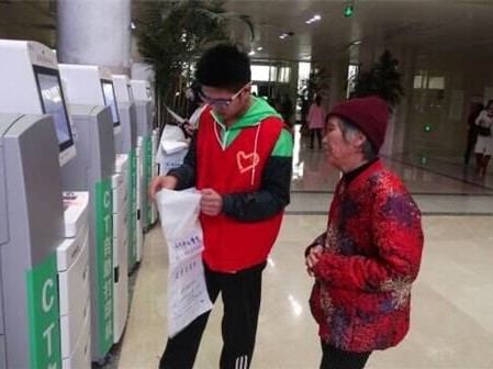 上午7点20分,志愿者们在北门集合完毕。8点,志愿者们准时到达医院,在医院工作人员的带领下,进行签到并领取志愿者服装,同时医院工作人员为志愿者们讲解了他们需要完成的任务和相关设备的使用方法。随后,志愿者们很快投入到自己的工作中。志愿者们主要负责一楼大厅的向导、挂号,以及四楼和五楼眼科的协助工作。医院的人流量很大,志愿者们积极地维护秩序,并且主动地引导病人去往指定科室,耐心地为需要帮助的人解答疑惑,看到精神不好的病人主动上前搀扶。活动期间,志愿者也时刻保持着与医护人员的交流,向他们了解常规的应急处理方法和他们的日常工作。看见有行动不便的老人前来看病时,志愿者们也主动上前搀扶,询问他们的情况,帮助他们买病例本、挂号。中午11点半,本次活动结束。