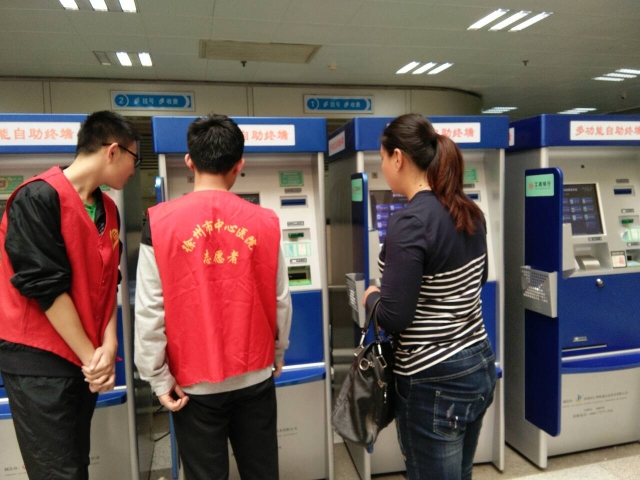 下午两点,志愿者们准时到达医院,在医院工作人员的带领下,进行签到并领取志愿者服装。工作人员将志愿者们分成两组,第一组志愿者负责在门诊楼的服务大厅,引导前来就诊的患者使用自助挂号机进行挂号以及其他各项服务,解决患者在使用机器过程中的问题,使每一名患者都可以高效地完成就诊。第二组志愿者负责帮助患者打印化验单,使没有携带就诊卡的患者也可以顺利拿到自己的化验单。经过医院工作人员的悉心指导以及志愿者们的认真学习,很快志愿者们就可以熟练地完成自己的志愿内容。在三个小时的志愿活动中,志愿者们除了帮助患者使用自助机器外,还主动搀扶前来就诊的老人并为老人指路。活动结束后,志愿者们露出了满足的笑容,在帮助他人的同时,自己也收获了成长。
