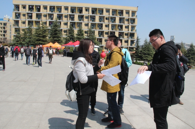 5·12青年志愿者协会于二食堂前开展“舞‘文’弄‘默’”比赛的前期宣传,为即将而来的比赛喧声造势。