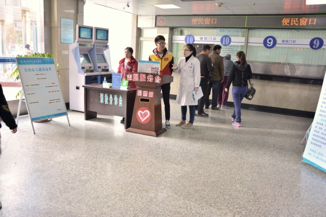 上午7:30,志愿者们统一在北门集合完毕,在活动负责人的带领下前往市一院。上午8:00,志愿者们到达了指定地点,在医院工作人员的讲解下,志愿者们很快明白了自己的任务与相关设备的使用方法,随后志愿者们领取了红马甲并即刻投入到了活动中。