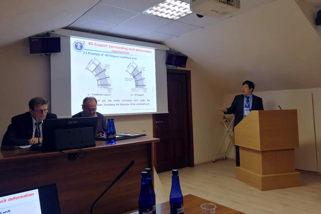 马院长和孟波老师分别作了题为“Study on the Surrounding Rock Deformation Mechanism of Four-Dimensional-Support”、“Fracture evolution and stability control of roadway host rock in deep mining”的会场学术报告,并同与会专家进行了深入学术交流。