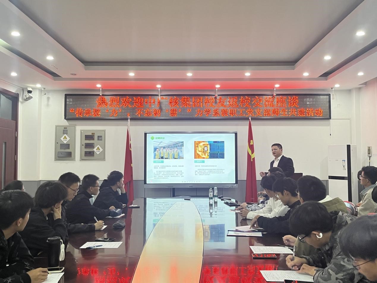 交流会上,陈德金介绍了中国广核集团的简要详情和发展历程,他指出,中国广核集团是以“发展清洁能源,造福人类社会”为使命,涵盖核能、核燃料、新能源、非动力核技术、数字化、科技型环保、产业金融等专业领域融一体的核电产业,历经40余年的发展,目前形成了“以核养核,滚动发展”的良性循环机制,建立了与国际接轨的专业化核电生产、工程建设、科技研发、核燃料供应保障体系。此外,陈德金还以丰富的行业经验和深厚的专业知识,为在场的学子们打开了一扇通往工程力学广阔天地的窗户。他回顾了自己在校园里的求知岁月、在实验室里埋头钻研的时刻、在学术道路上的探索,从初入职场时的懵懂与迷茫,到不断积累经验、提升自我,最终在行业中崭露头角。通过生动的案例分享和深入浅出的专业解读,不仅让同学们对工程力学的应用有了更直观的认识,更激发了大家对未来发展的无限憧憬和积极思考。
