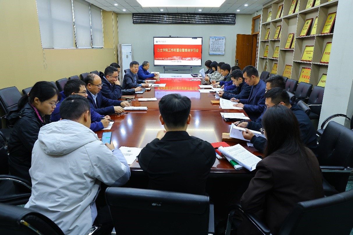 在A220会议室召开工作布置暨集体学习会,深入学习全国教育大会精神,布置开展强校战略研讨。院党政领导、院党委、教职工党支部书记、辅导员参加会议,院党委书记马占国主持会议。
