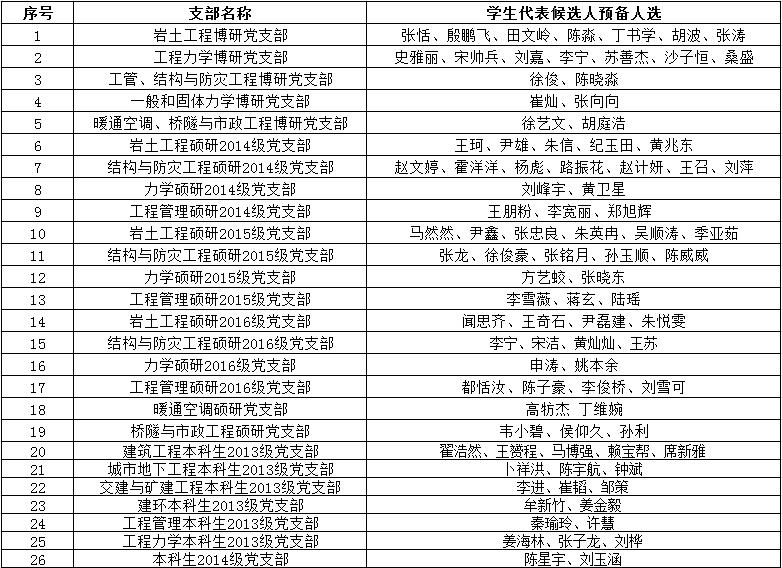 党委研究确定学生党员代表候选人预备人选共计92名。现将名单予以公示。
