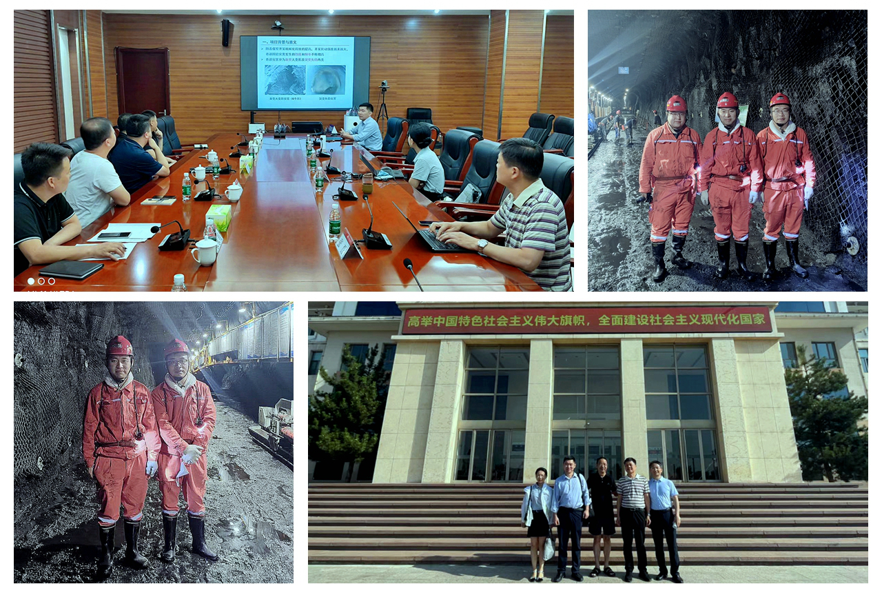 副教授孟波、许国安、许娜,深地国重尹乾副教授一行前往内蒙古不连沟煤矿,为陷落柱地质灾害巷道支护技术服务提供矿大方案。为确保安全高效通过地质灾害区域,课题组收到通知后,当日即从徐州出发,下午5点到矿后立即到井下顶板不稳定区域靠前调研,贯彻“大兴调查研究之风”精神,坚信没有调查就没有发言权,传承“求真务实精神”,直至晚上11点升井,准备初步谈判和汇报材料,第二天8点半召开现场办公会,为煤矿提出灾害巷道顶板支护思路及安全注意事项,获得煤矿高度赞许,“黄色直播