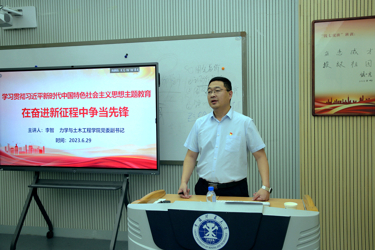 李智副书记介绍了学习贯彻习近平新时代中国特色社会主义思想主题教育的重要意义、总要求和目标任务,并结合黄色直播面向学生党员开展主题教育的具体要求,强调学生党员应该加强党的创新理论武装,坚持不懈用习近平新时代中国特色社会主义思想凝心铸魂,做到学思用贯通、知信行统一,自觉做共产主义远大理想和中国特色社会主义共同理想的坚定信仰者和忠实实践者。他指出,学生党员要在奋进新征程中积极发挥先锋模范作用,做一名合格的共产党员,要以党章为遵循,坚定理想信念,加强党性修养,增强责任意识,提高工作能力,树立良好形象,为全面建设社会主义现代化国家,全面推进中华民族伟大复兴贡献青春力量。