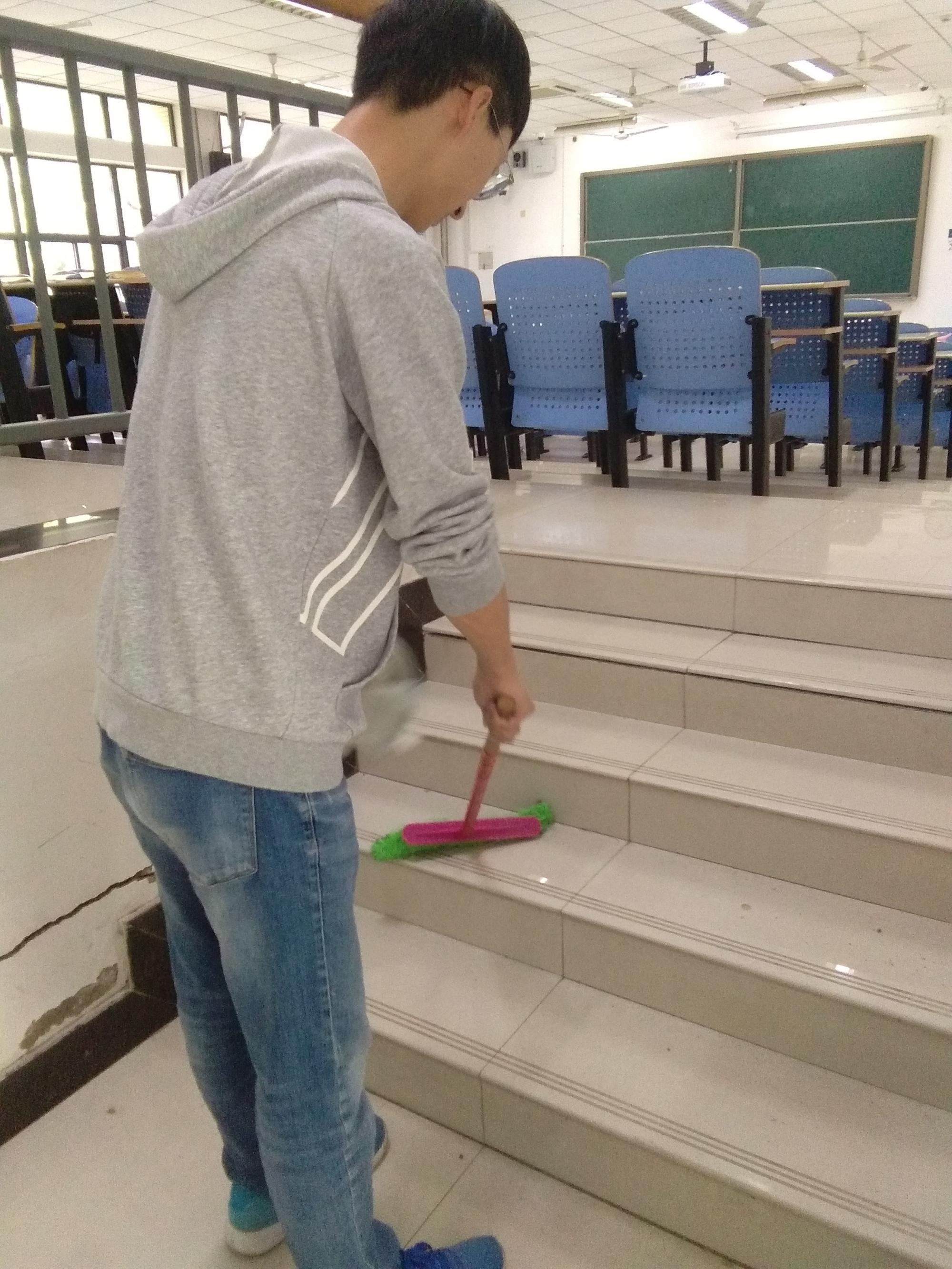 各发展对象在志愿活动中争当先锋模范,认真细致,不放过每一处细节,得到了保洁阿姨的一致赞扬。张岑楠同学在活动中表示:“自己是第一次做公教区清洁,一直以来都是享受着干净整洁的学习环境的受益者,今天能作为一个志愿者感到很是高兴。” 十名发展对象对教室进行清洁,在给同学们提供了一个干净的学习环境的同时,自己也将奉献精神具体实践到了生活之中.