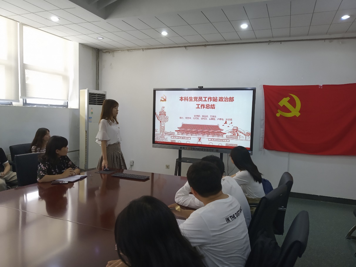 会议开始首先由各部门部长、副部长介绍部门工作的内容与成果。政治部第一个汇报了本年度的各项主要工作,其定期举办的理论研习社使党站成员扩展了视野,同时学习到了更多的理论知识,另外政治部所举行的多个志愿活动激励了党站成员的奉献精神;紧接着组织部大致介绍了本年度的一些主要工作内容,其组织的党员下宿舍活动使各位正式党员和预备党员加深了为他人服务的理念;然后宣传部向大家讲述了其各项宣传工作的工作成果,宣传工作无处不在,包括线上的动态、公众号,以及线下的展板、宣传栏等,这些宣传工作使同学们时刻保持斗志、鞭策自己努力奋斗;最后由纪检部汇报了其主要工作,纪检部成员全年不断督促同学们的工作与学习,为党站各项工作的顺利开展提供了保证。随后站长与副站长分别总结与分享工作经验。最后由刘晴老师对党站本年度的表现给予肯定,并对接下来的工作做出指导,然后给即将离校的毕业生成送上祝福。