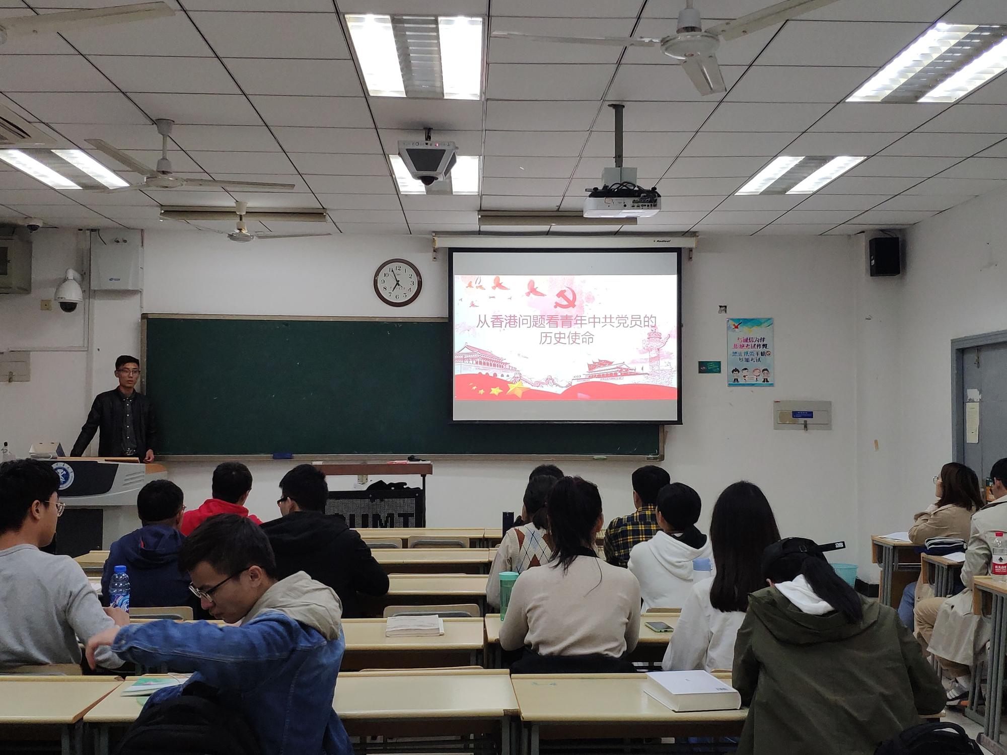 10月22日晚,建环本科生党支部组织支部党员及发展对象与入党积极分子一同参与本次党课。党支部书记谢幸福老师以“从香港问题看青年中共党员的历史使命”为主题为大家带来了一场生动的党课。