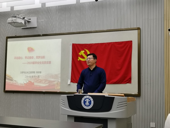张庆春副书记为全体同学讲授了“不忘初心、牢记使命,筑梦远航”的专题党课。他结合自己在矿大的学习和工作经历,以一个老党员、老矿大人的身份,为全体党员同学讲授了党的十九大精神、“两学一做”常态化制度、党的十九届四中全会精神和“不忘初心、牢记使命”主题教育等方面的内容。他还围绕“学生党员的初心和使命”主题,向所有学生党员提出了不忘初心,强化政治素养;强化意识,续创优秀学业;勇担责任,践行党员使命;引领成长,发挥朋辈作用;展示形象,初登社会舞台;文明离校,感恩黄色直播