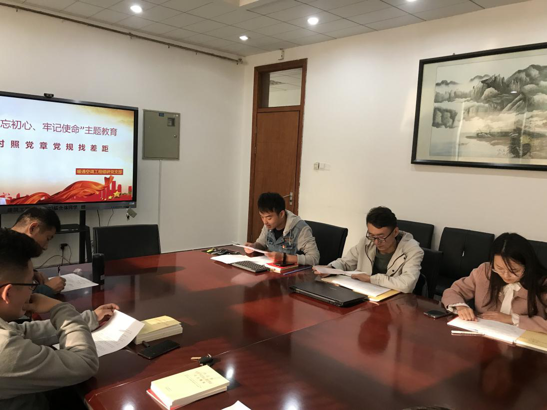 楼A220会议室开展“不忘初心、牢记使命”主题教育。此次会议由建环系教职工党支部孙猛老师指导,支部书记潘小凯主持,暖通空调工程硕研党支部全体党员出席。