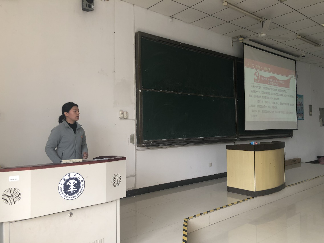 各小组组长就组内交流成果与大家进行了深入的交流。其中第一小组以“于曲直之间,树立正确价值观”为主题,通过提出什么是价值观、其对人生的影响的问题,引出我们应如何践行正确的价值观,实现人生价值。作为一名学生应深切关爱祖国的前途和命运,不负时代重托和历史使命,把实现自己的人生价值同祖国的需要结合起来。第三小组以“一名党员就是一面旗帜”为主题,讨论了青年学生如何在实际工作中起到先锋模范作用?一名党员就是一面旗帜,就要本分工作做扎实,坚持学习长本领,坚定信念有觉悟,甘于奉献有担当。全党上下就是一片红色的海洋,在团结奋进、繁荣昌盛中实现我们伟大的中国梦。