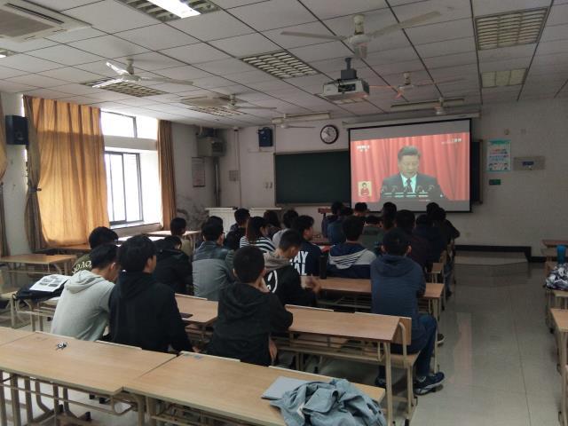 2014级本科生第一党支部全体成员在博五B402集体观看十九大开幕会。
