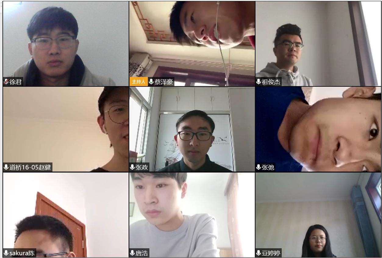 交建本科生党支部书记郭崟主持召开了第一次党支部线上会议,交建本科生党支部全体党员参与了本次会议。