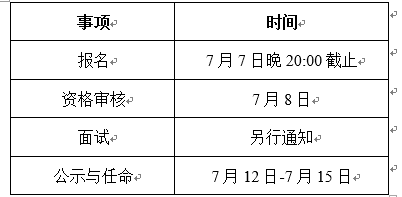 本次换届分报名、资格审核、面试、公示、组织任命五个环节。