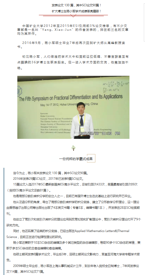 发表论文 130 篇,其中SCI论文90篇! 矿大博士生杨小军学术成绩单亮瞎眼!