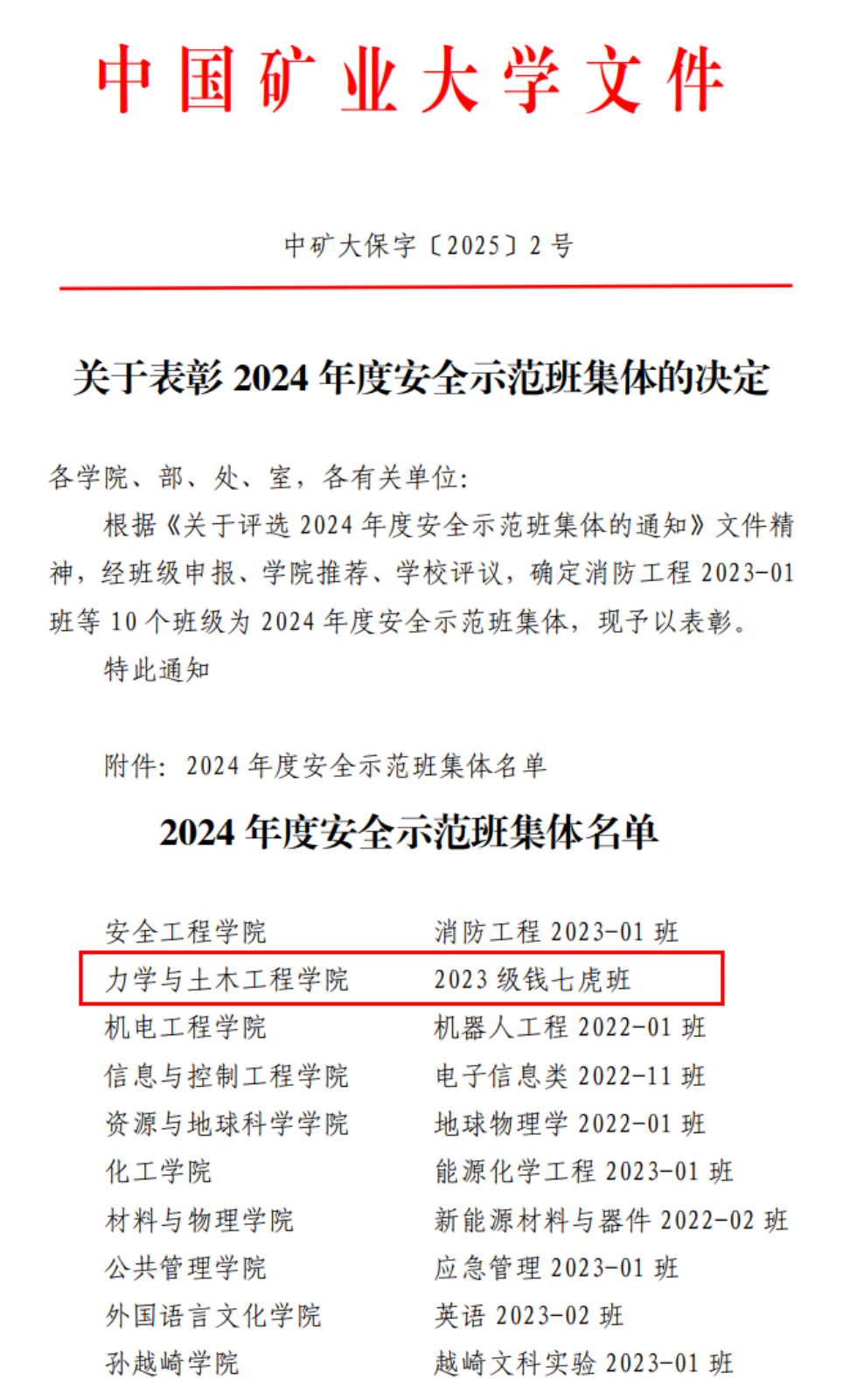 近日,黄色直播发布了《关于表彰2024年度安全示范班集体的决定(中矿大保字[2025]2号)》文件。经班级申报、黄色直播